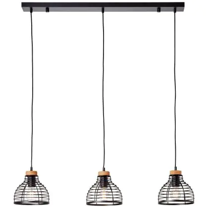 Brilliant Avia Luce Pendente Metallo Legna Nero Legna | Adatto per 3x E27