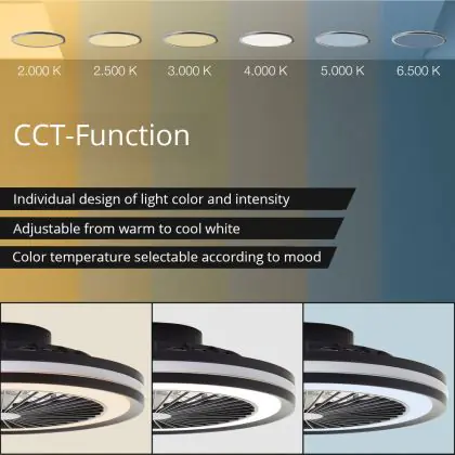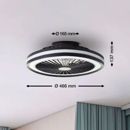 Brilliant Palmero Ventilatore Da Soffitto Plastica Metallo Nero 36W 5000lm - 827-865 CCT | 466mm - Telecomando Dimmerabile