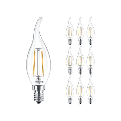 Confezione Multipack 10x Philips Corepro LED Candela E14 Piegato-tip Filamento Chiara 2W 250lm - 827 Bianco Molto Caldo | Sostitutiva 25W