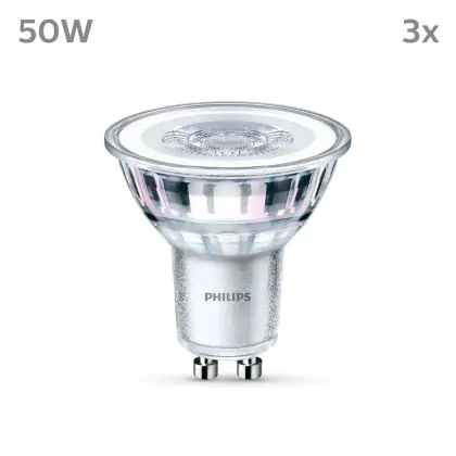 La Confezione Multipack 3x Philips Faretti LED GU10 PAR16 5W 390lm 36D - 840 Bianco Freddo è perfetta per la sostituzione della convenzionale Lampada alogena W GU10 con colore della luce 840 Bianco Freddo. Questa Lampada ha una forma Spot con un diametro di 50mm. I due perni sono distanti tra loro 10mm. Questa lampada funziona con la 220V-230V e quindi non ha bisogno di trasformatori. Passare a LED ti offrirà molti vantaggi!