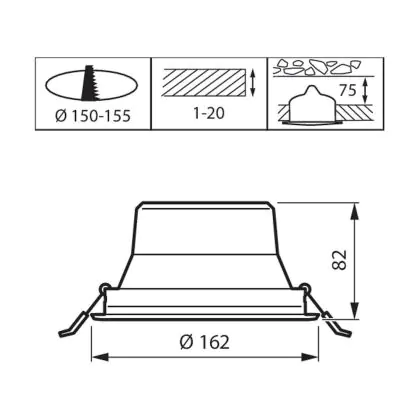 Il foro di un apparecchio differisce dalle dimensioni e si riferisce specificatamente alla dimensione del foro nel soffitto necessario per fissare saldamente la sorgente luminosa durante l'installazione.