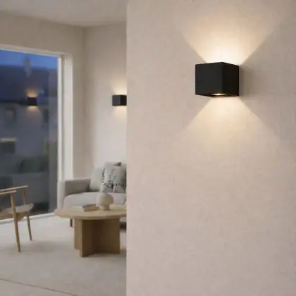 Descrizione D'Lite Luce Da Parete Elingen Aluminium Nero Up & Down 4.9W 480lm - 830 Luce Calda - | IP65 - Sensore Di Luce