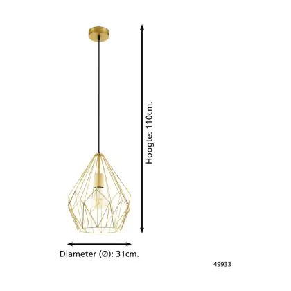 Eglo Luce Pendente Carlton Acciaio Oro | IP20 - Adatto per 1x E27