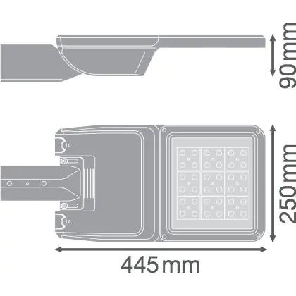 Descrizione Ledvance Illuminazione stradale LED Flex Grande RV25ST Grigio 36W 4850lm 25x145D - 727 Bianco Molto Caldo | IP66 – Asimmetrico