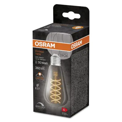 La Ledvance Vintage 1906 LED E27 Edison Smoke 7.8W 360lm - 818 Bianco Molto Caldo | Dimmerabile - Sostitutiva 30W è la perfetta sostituzione per la tua lampada convenzionale 30W con attacco E27 grazie alla sua tecnologia LED. Passare a LED ti offrirà tanti vantaggi!