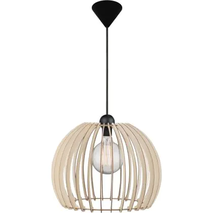 Questa moderna lampada a sospensione ha un paralume realizzato con lamelle di legno che distribuiscono la luce in modo uniforme. Dove la lampadina è visibile tra le lamelle, si consiglia di installare una lampadina decorativa. La lampada è ideale per essere collocata sopra la cucina o il tavolo da pranzo. Si prega di notare che la lampadina non è inclusa.