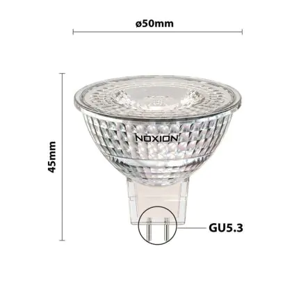 La Noxion Faretti LED GU5.3 MR16 3.4W 345lm 36D - 840 Bianco Freddo | Sostitutiva 35W è perfetta per la sostituzione della classica lamapda alogena35W GU5.3 con colore della luce 840 Bianco Freddo. Questa lampadina ha una forma Spot con un diametro di 50mm. La distanza tra I due pins è di 5.3mm. Queste lampade hanno bisogno di un trasformatore poiché operano a 12V. I trasformatori possono essere trovati in "Accessori" su questa pagina. Qual’è il trasformatore adatto? Dipende dal numero di lampade che si vuole installare. Il nostro servizio di vendita e assistenzati ti aiutera nella scelta. Passare a LED offre molti vantaggi!