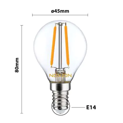 La lampada Noxion Lucent Lustre LED E14 Sferica Filamento Chiara 2.5W 250lm – Dimmerabile - Sostitutiva 25W è il sostituto perfetto per le tue vecchie lampade 25W con attacco a vite piccolo E14 grazie alla sua tecnologia LED. Passare a LED ti offrirà molti vantaggi!
