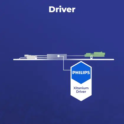 Questo pannello LED di Noxion ha dimensione 60x60cm, che lo rende perfetto da montare in un soffitto a griglia, ma può anche essere montato a superficie con degli accessori appositi. Inoltre consuma solo 28 W ma ha una potenza luminosa di 3920 lm, il che lo rende un perfetto sostituto dei tubi fluorescenti 4x18 W. I costi energetici saranno fino al 70% più bassi rispetto a un apparecchio convenzionale.