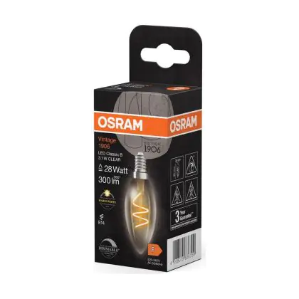 La lampada Osram Vintage 1906 LED Classic Slim E14 Candela Filamento Chiara 3.1W 300lm - 927 Bianco Molto Caldo | Miglior Resa Cromatica - Dimmerabile - Sostitutiva 25W è il sostituto perfetto per le tue vecchie lampade 25W con attacco a vite piccolo E14 grazie alla sua tecnologia LED. Passare a LED ti offrirà molti vantaggi!