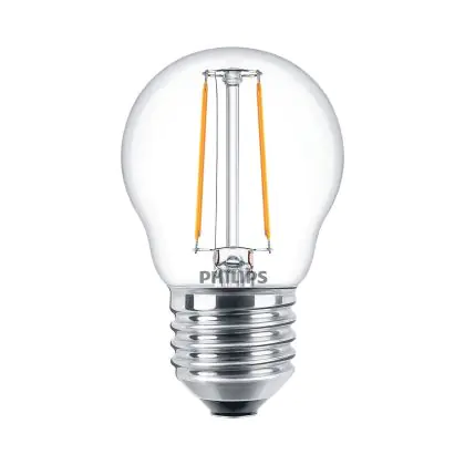 La Philips Corepro LED Lustre E27 Sferica Filamento Chiara 2W 250lm - 827 Bianco Molto Caldo | Sostitutiva 25W è la perfetta sostituzione per la tua lampada convenzionale 25W con attacco E27 grazie alla sua tecnologia LED. Passare a LED ti offrirà tanti vantaggi!