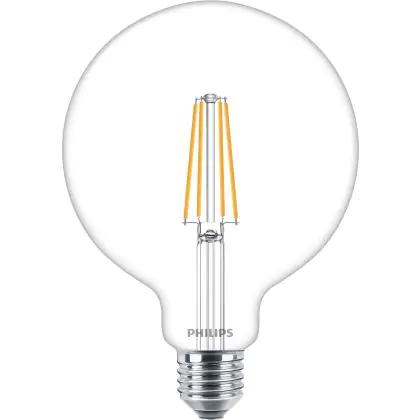 La Philips MASTER Value LED Globe E27 120mm Filamento Chiara 5.9W 806lm - 927 Bianco Molto Caldo | Miglior resa cromatica - Sostitutiva 60W è la perfetta sostituzione per la tua lampada convenzionale 60W con attacco E27 grazie alla sua tecnologia LED. Passare a LED ti offrirà tanti vantaggi!