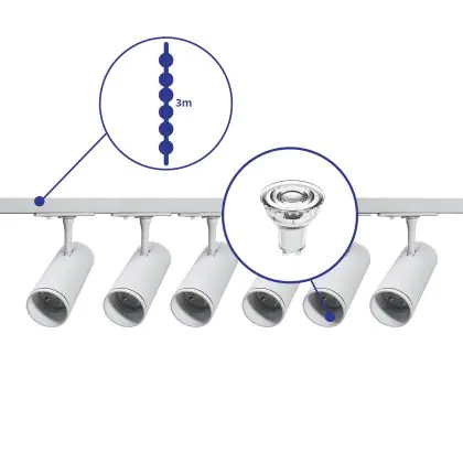 | Nome del fabbricante | Complete Straight 3-meter 1-Phase Track Set White incl. 6x Spot fixture + GU10 2700K 3W Dim – 2x 1.5 | |