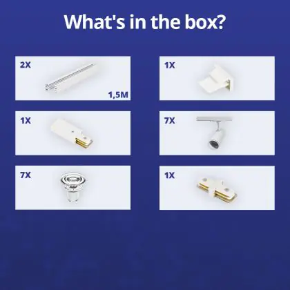 Descrizione Set completo 1-Fase Rail 3 Metro Bianca | incl. 7x Faretti + GU10 2700K 3W Dimmerabile + Tappo Di Chiusura, Connettore di Alimentazione e I-Connettore